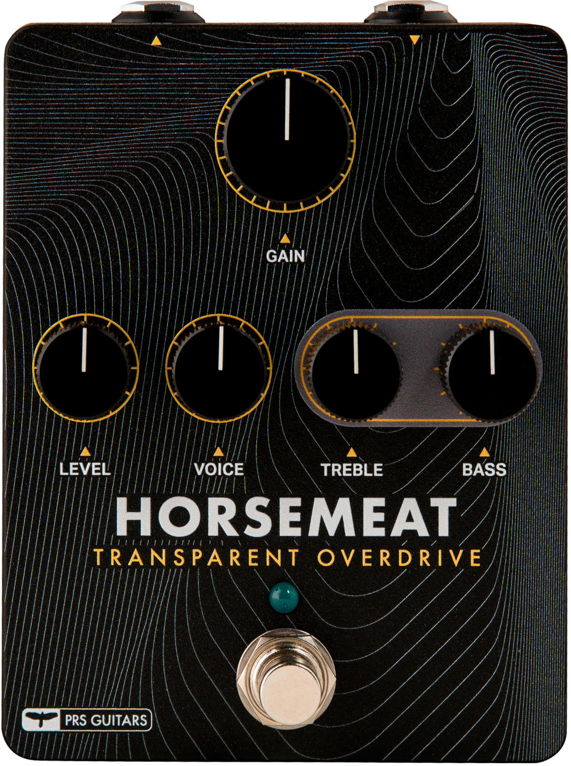 The PRS Horsemeat transparent overdrive is a from-scratch circuit designed to enhance guitar tone without coloring it. Using germanium diodes, Horsemeat will give throatiness without sounding nasal or too high-pitched and harmonic richness by boosting both low- and high-end frequencies, all while providing more available headroom. Depending on the setting, the PRS Horsemeat can be used as a clean boost, straight overdrive, or even enhance an amplifier’s distortion by slightly pushing the front end of the amp’s preamp section.
