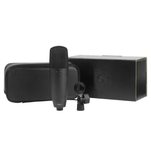 Kardioid kondensatormikrofon gir en jevn, nøytral lydgjengivelse med full karakter og består av en mikrofon, en polstret bæreveske med glidelås og et dreibart feste.